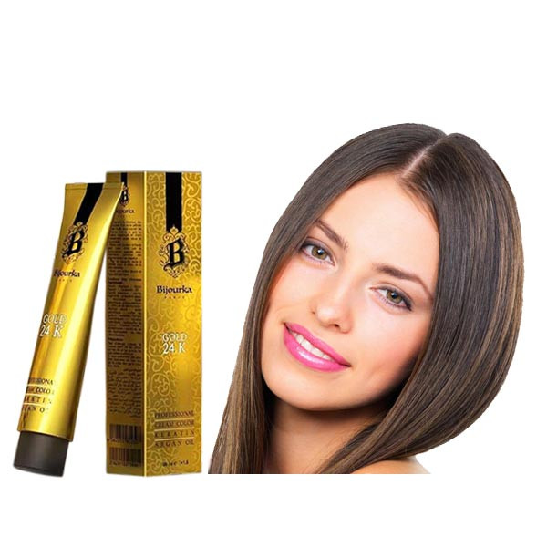رنگ مو بیجورکا علاوه بر ذرات طلا حاوی مقادیر فراوانی کراتین، روغن آرگان و ویتامین نیز می باشد که برای شادابی، تقویت و رشد موها بسیار موثر است.